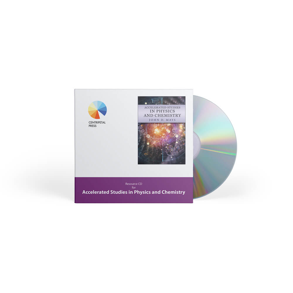 Note: As of 2020, physical Resource CDs have been discontinued and the files are now distributed as digital downloads, accessed through your My Library user account. The digital resources contain materials to support Accelerated Studies in Physics and Chemistry(ASPC) 2nd ed. All files are in Microsoft Word .doc format except for answer keys, which are in PDF format. To access your documents, please create an account on the Classical Academic Press website at this link. Once the account is created, please notify info@centripetalpress.com. You will be able to download your documents by navigating to the My Library page under your Account page.The Digital Resources are essential for implementing the mastery-learning paradigm central to the Centripetal Press educational strategy. The central component to our mastery-learning paradigm is weekly, cumulative assessments. The quizzes are cumulative all year long so that students are required to maintain a study strategy that keeps key concepts from previous chapters fresh while learning material from each new chapter.The Digital Resources also contains the Weekly Review Guide, another essential component for student success. Distribute weekly to guide students' review of key material from the past which will appear on forthcoming assessments.